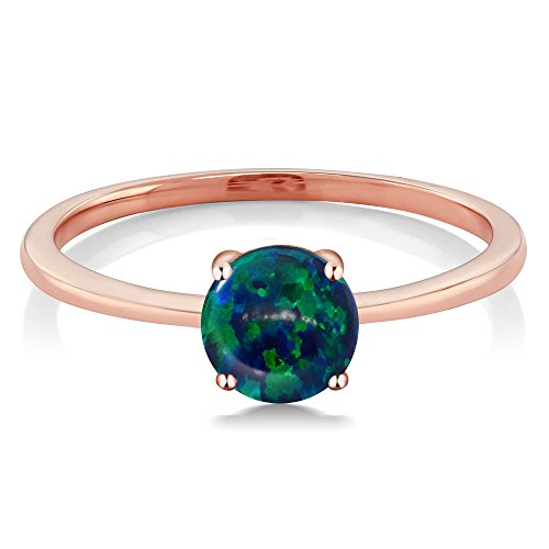 -. Title : 10K Rose Gold 0.75 Ct Round Cabochon Green Simulated Opal Ring (Available in size 5, 6, 7, 8, 9)
