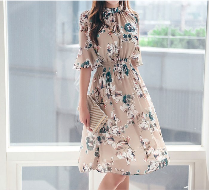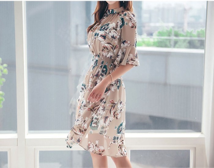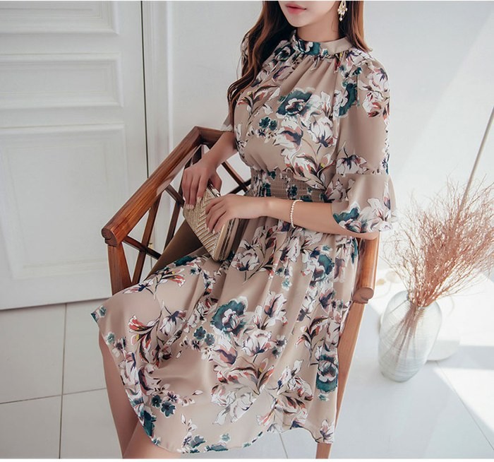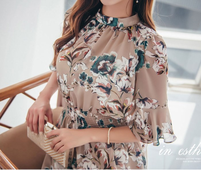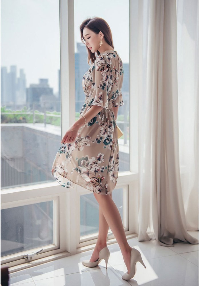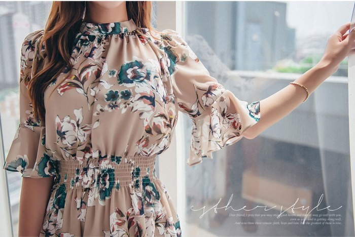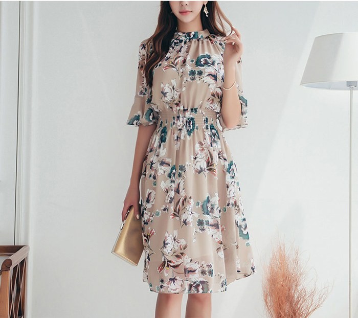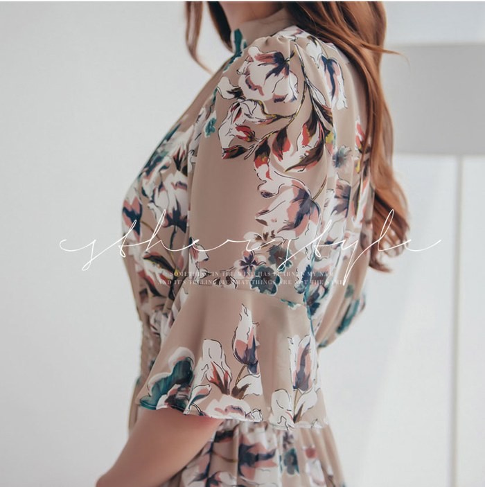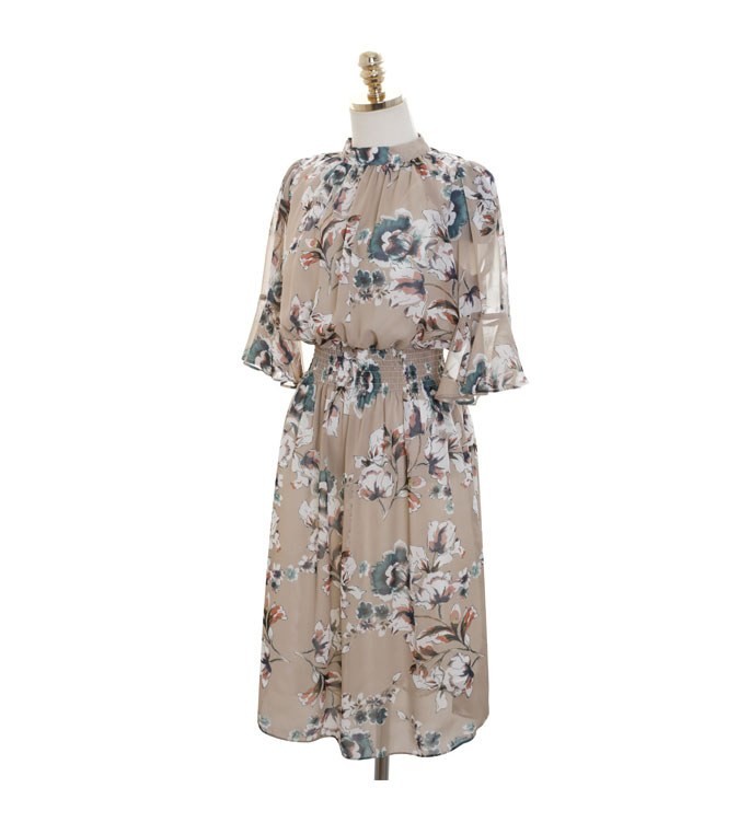 商品名:ワンピース 膝丈 花柄 フラワー 5分袖
