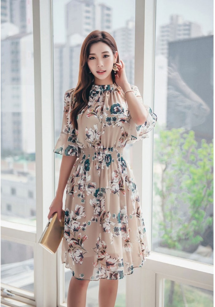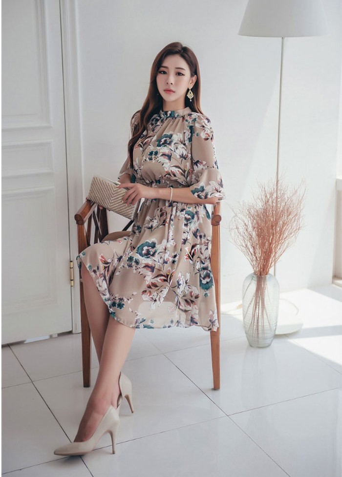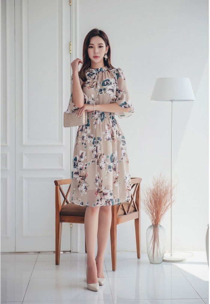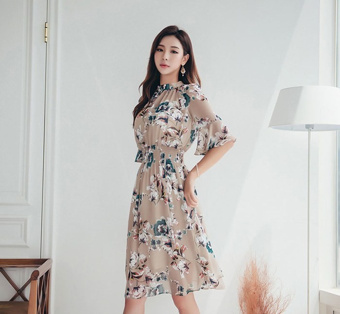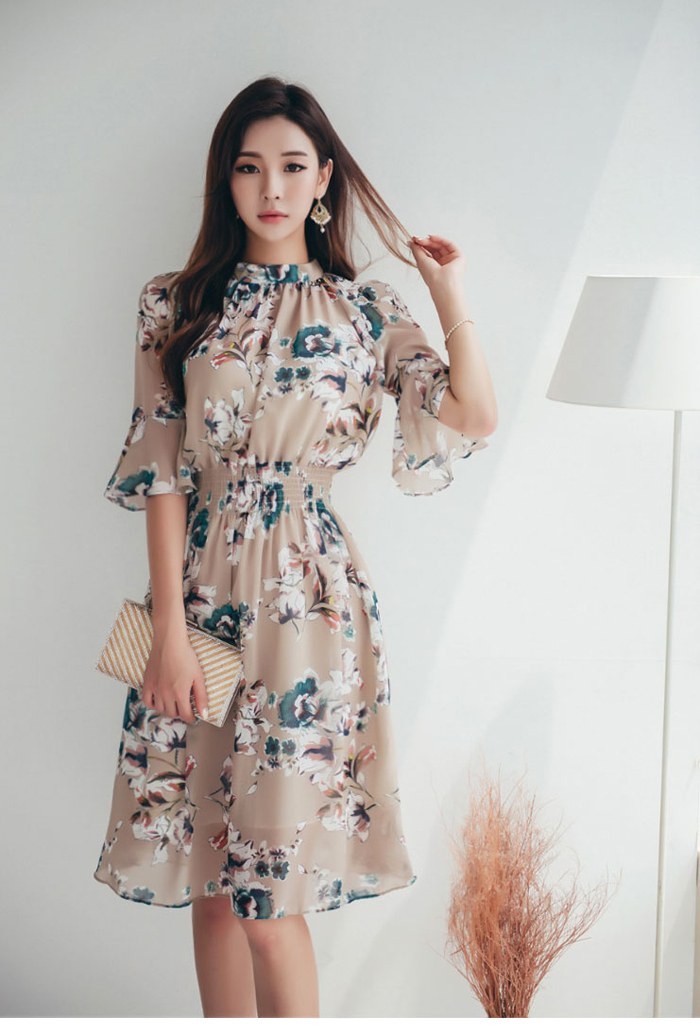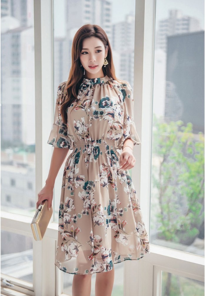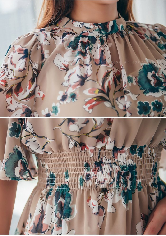 商品名:ワンピース 膝丈 花柄 フラワー 5分袖
