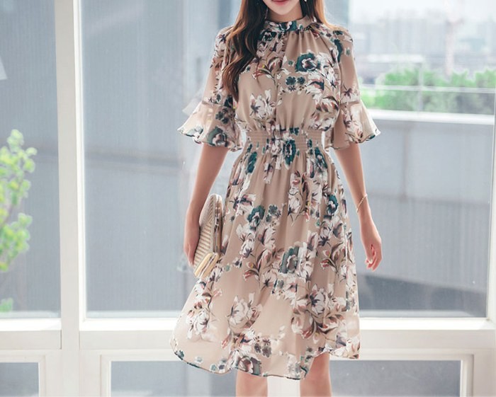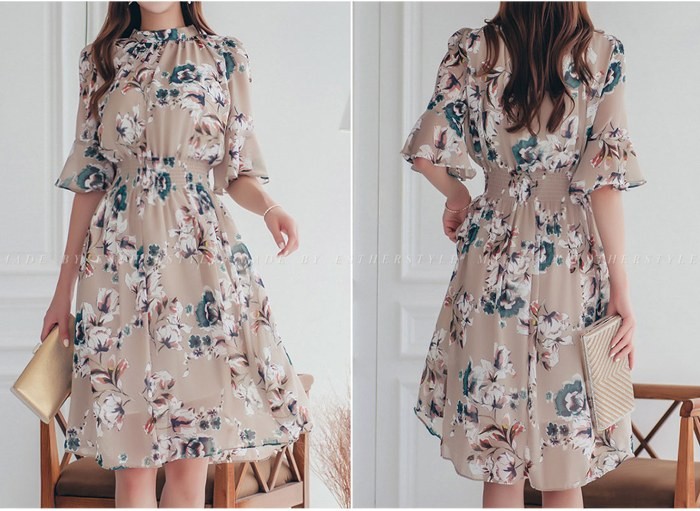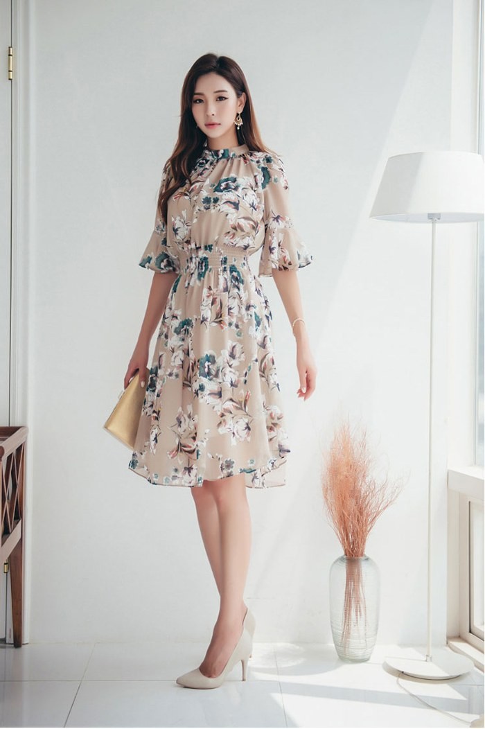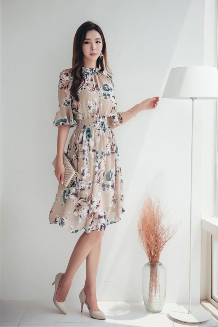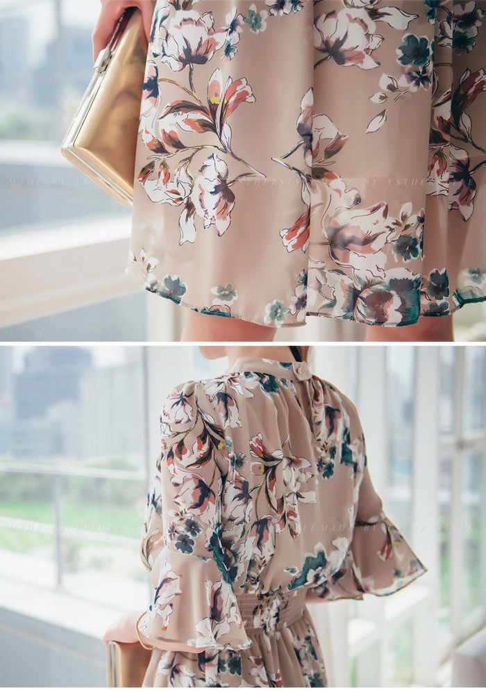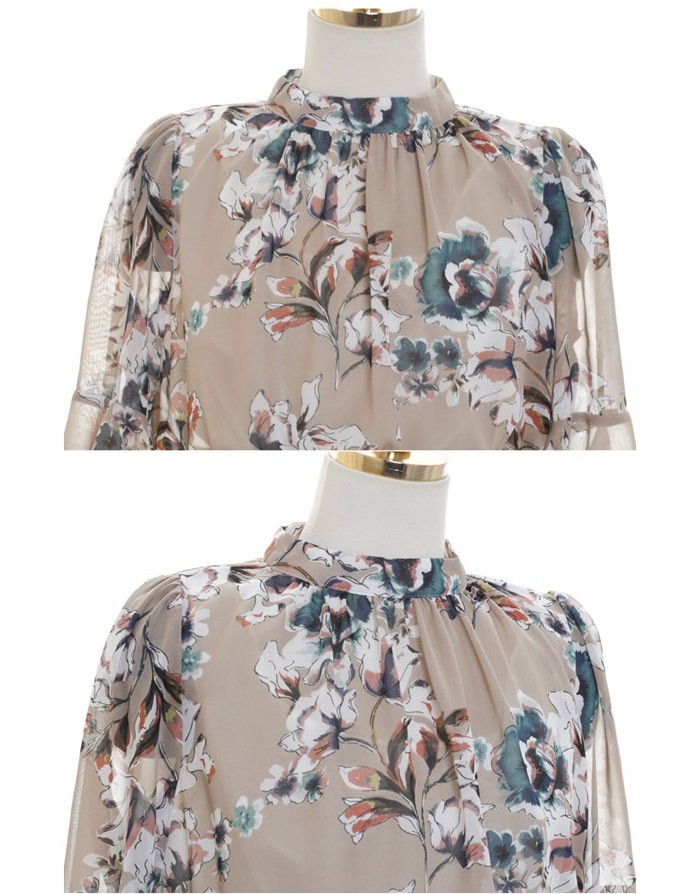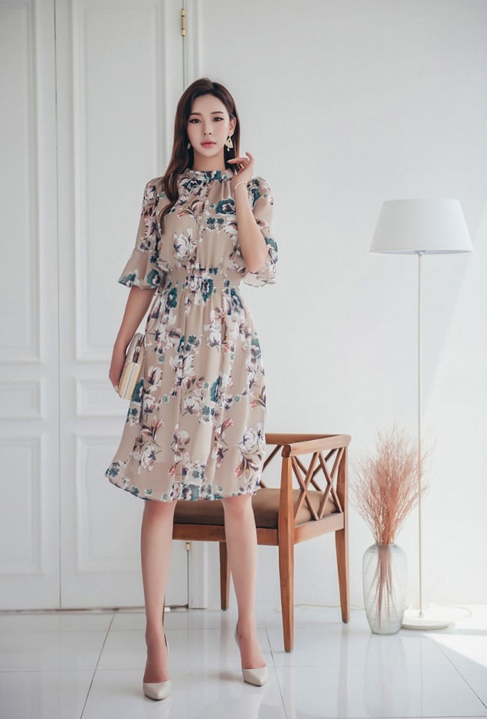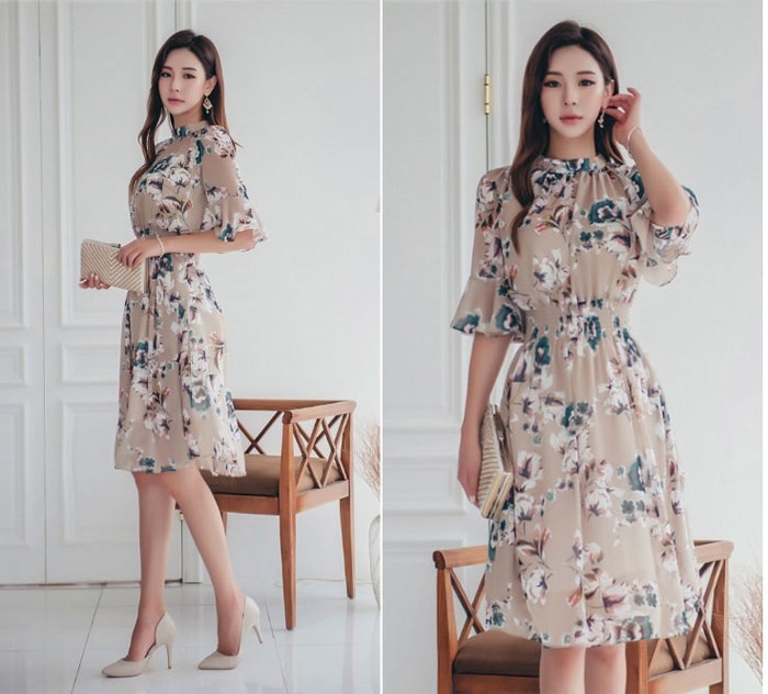 商品名:ワンピース 膝丈 花柄 フラワー 5分袖