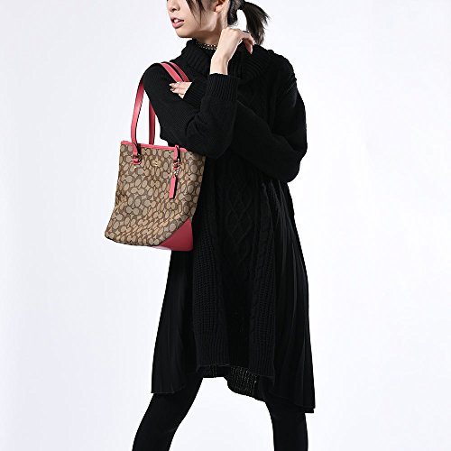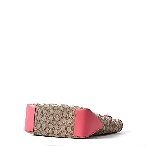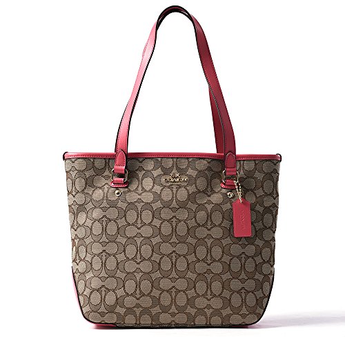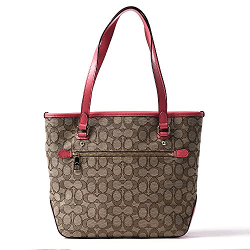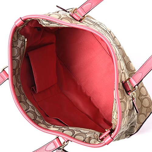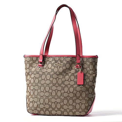 Coach Outline Signature Zip Top Tote F58282 Khaki/Strawberry