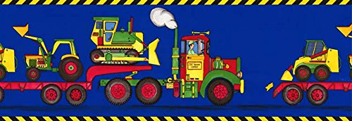 -. Title : Kids Construction Equipment on Semi Truck Blue Wallpaper Border (BZ9169B)