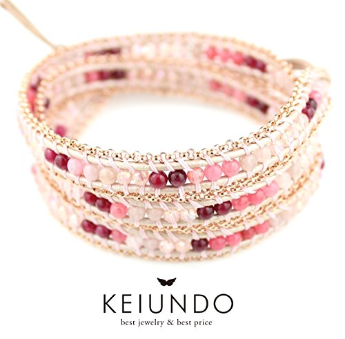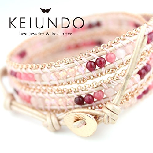 KEIUNDO(K《운도우》) [K운도우]KEIUNDO오리지날 레더 3 연 랩 팔찌 천연석 아벤추린 핑크 가죽 건착 봉투 첨부 레이디스 KEIBT-1223mm-F-3