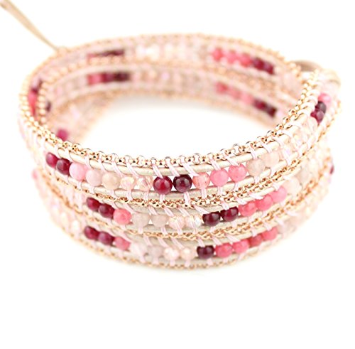 원본상품명: [ケイウンドウ]KEIUNDOオリジナル レザ? 3連 ラップブレスレット 天然石 アベンチュリン ピンク 本革 巾着袋付き レディ?ス KEIBT-1223mm-F-3