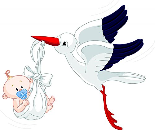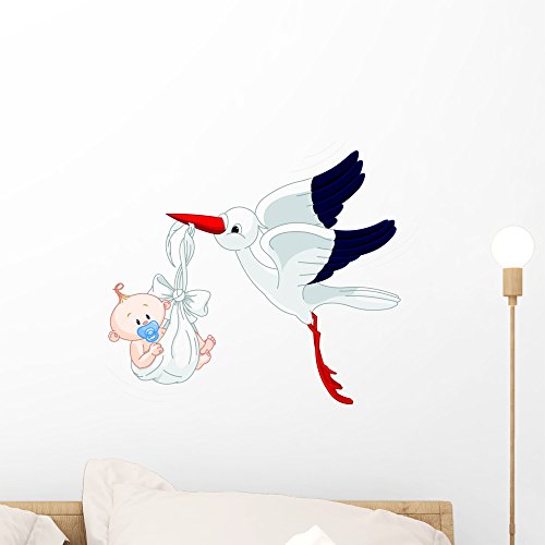 Stork and Baby Wall Decal by Wallmonkeys Peel and Stick Graphic (18 in W x 15 in H) WM132208