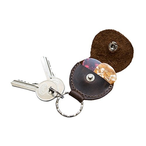 HANDMADE FROM SOFT & ATTRACTIVE FULL GRAIN LEATHER: This Leather Key Chain and Guitar Pick Holder is handcrafted using the highest quality of leather that you will find, namely Full Grain Leather. The leather is hand cut and diligently sewn, with a heavy duty brass key ring to ensure a long lasting life and durability. After time and use on the road, the leather will attain a beautiful and unique patina.