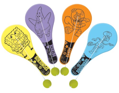 (Amscan)/Stationery Party Supplies/Party Supplies/DIRECT FROM USA/Silly Spongebob Party Assorted Colors Paddle Ball Favours, Plastic, 5" x 7", Pack of 12
