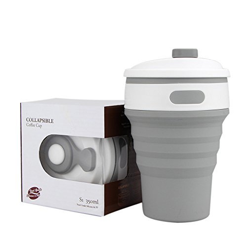 BURUIS Collapsible Silicone Coffee Cup 350 ML Portable Travel Mug Coffee Lover Pocket Size for Outdoor/ Camping/ Hiking 12 oz