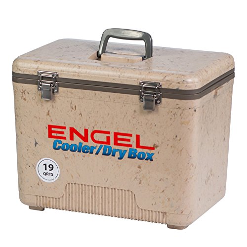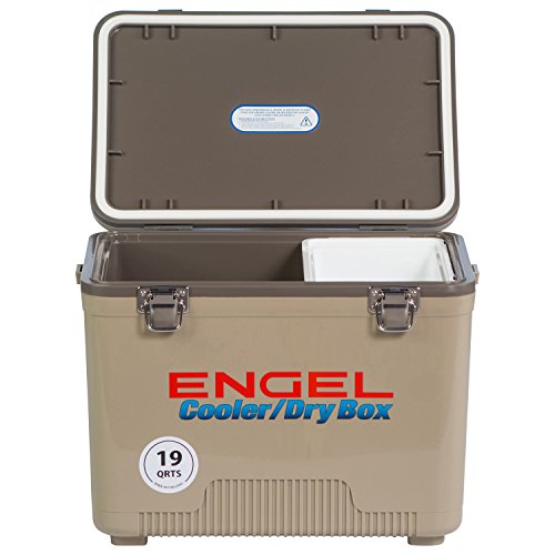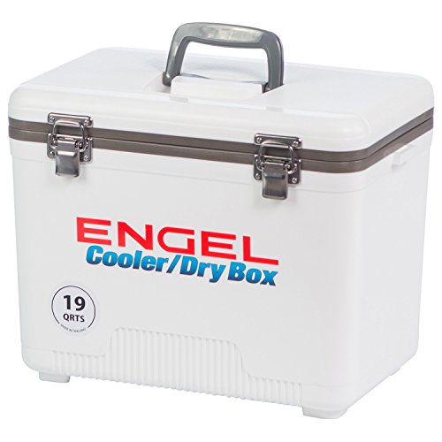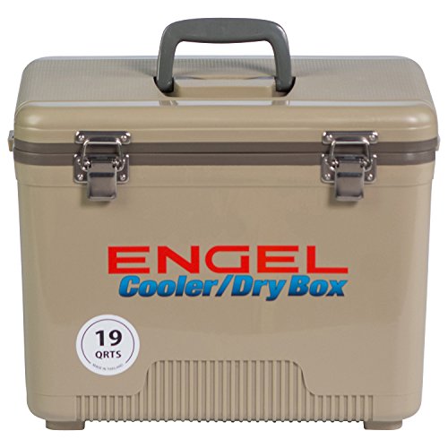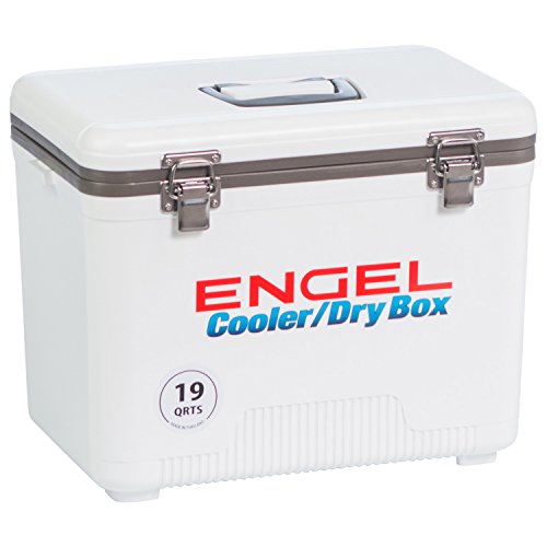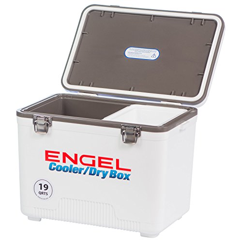 -. Binding : Sports -. Brand : Engel -. Feature : Air-tight O-ring, insulated with high-grade polystyrene core / Recessed ergonomic carry handles and an integrated shoulder strap / All fittings are securely fixed with stainless steel screws / Non-absorbent surface will not allow stains or odors to penetrate the cabinet / Includes (1) hanging tray -. Label : Engel USA -. Manufacturer : Engel USA -. Model : UC19T-RH-PARENT -. MPN : 4 -. PartNumber : 4 -. ProductGroup : Sports -. ProductTypeName : SPORTING_GOODS -. Publisher : Engel USA -. Studio : Engel USA -. Title : ENGEL USA Cooler/Dry Box, 19 Quart