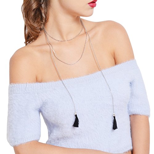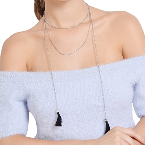 LittleB Fashion Necklace Tassel Long Sweater Chain for women and girls. (Silver)