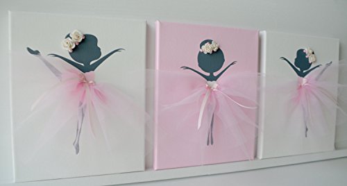 -. Title : Ballerina nursery wall art in pink and ivory. Girls room decor.