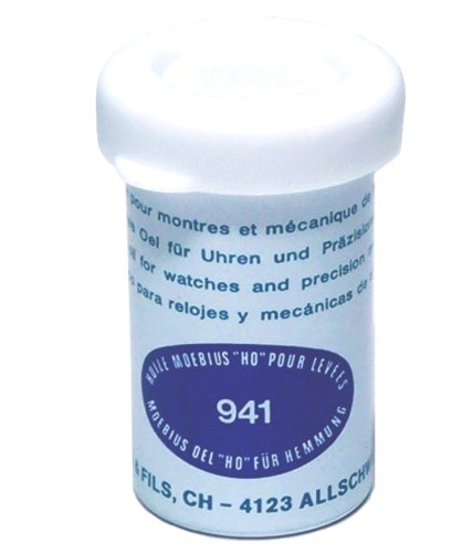 Studio : Moebius Publisher : Moebius Binding : Watch Product Description Moebius Watch and Clock Oil has been acknowledged and acclaimed as the finest for generations. All Moebius products are developed, manufactured and tested in Switzerland. The large variety enables you to choose just the right oil or grease for your particular purpose. Natural Watch Oils, a mixture of neatsfoot and mineral oils, are satisfactory except that, after a period of time in contact with metals, they change chemically and form a gummy substance. Synthetic Oils have the same lubricating properties as natural oils, but will not change over a period of time, so they will not gum up, cause corrosion, become acidic, creep, or spread. **Specially manufactured for use on pallets. Has a higher degree of oiliness than the and larger watch movements. Ideal for lubricating the pivots of staffs, oscillating weights and other parts of automatic watches. Excellent to minus 68 degrees farenheit (-20 degrees C). 2 ml bottle. 0