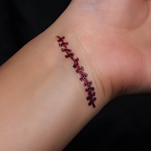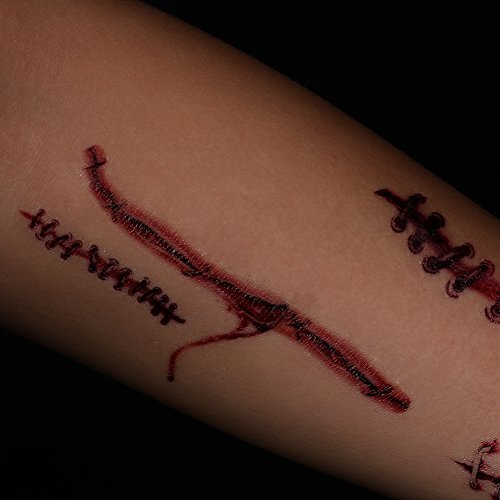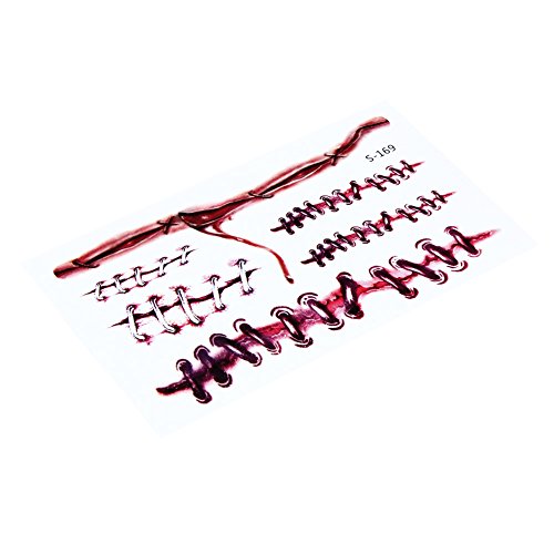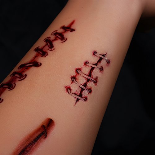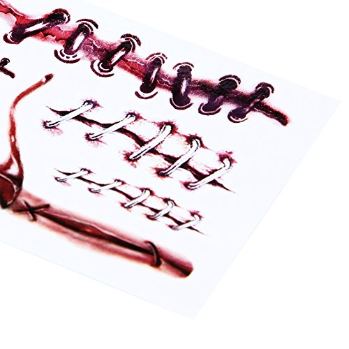 Nikekaco 10 Pcs Temporary Tattoo Sticker - Halloween Terror Wound Realistic Blood Injury Scar Tattoo Sticker - Horror Realistic Fake Waterproof Bloody Wound Sticker for Cos play Party Halloween