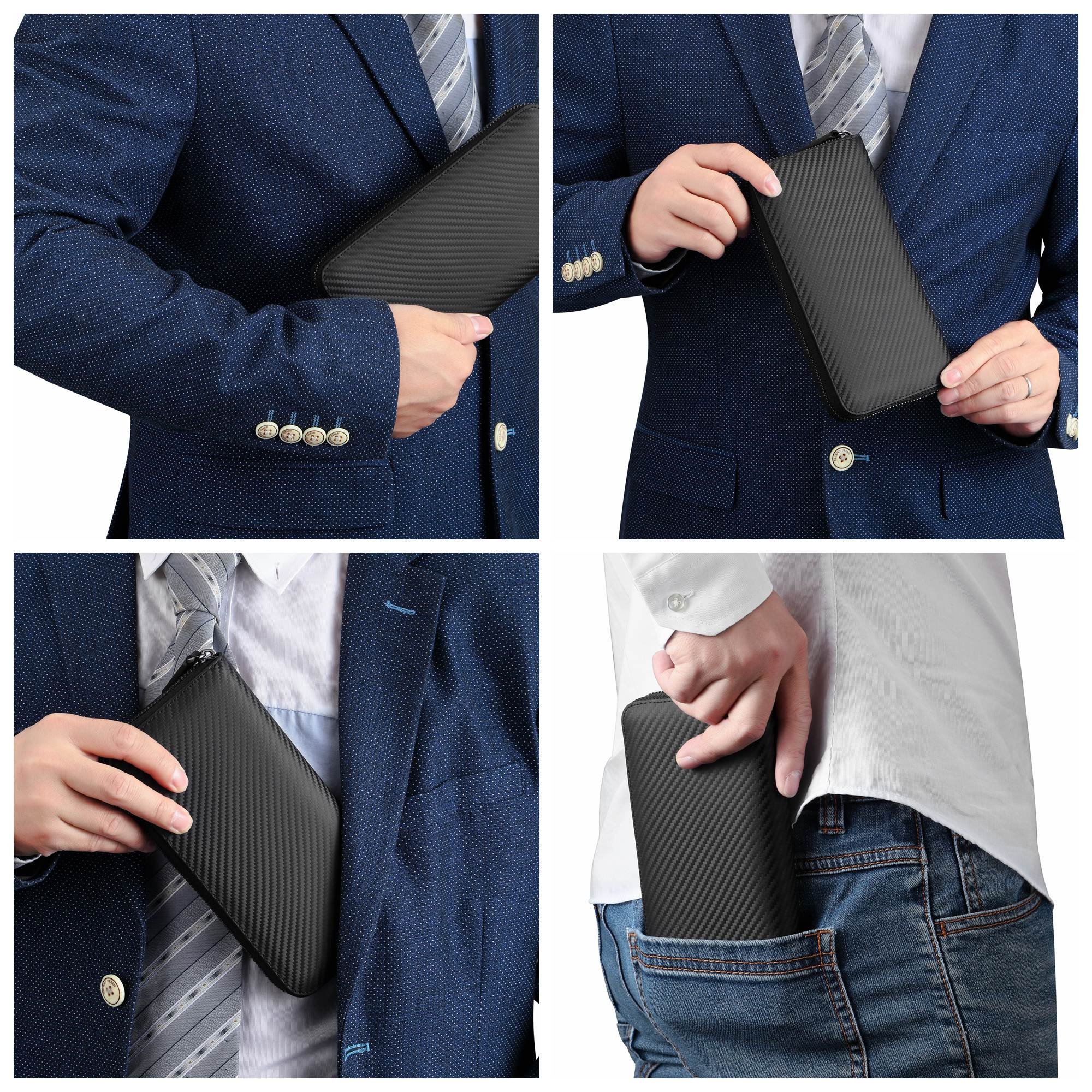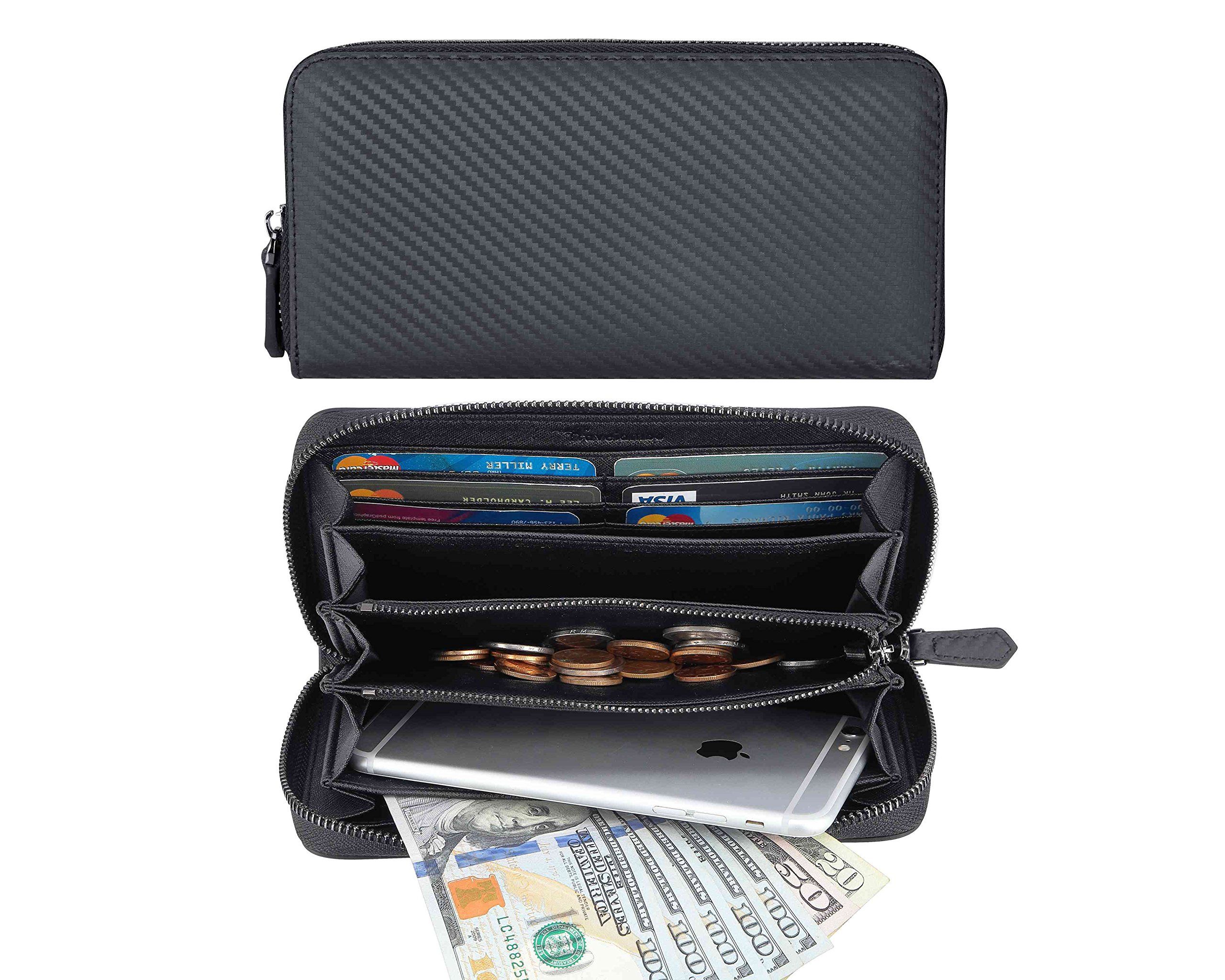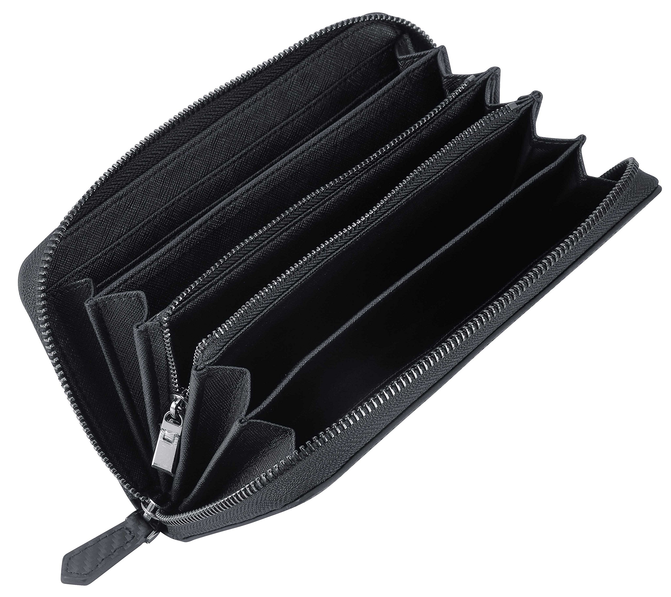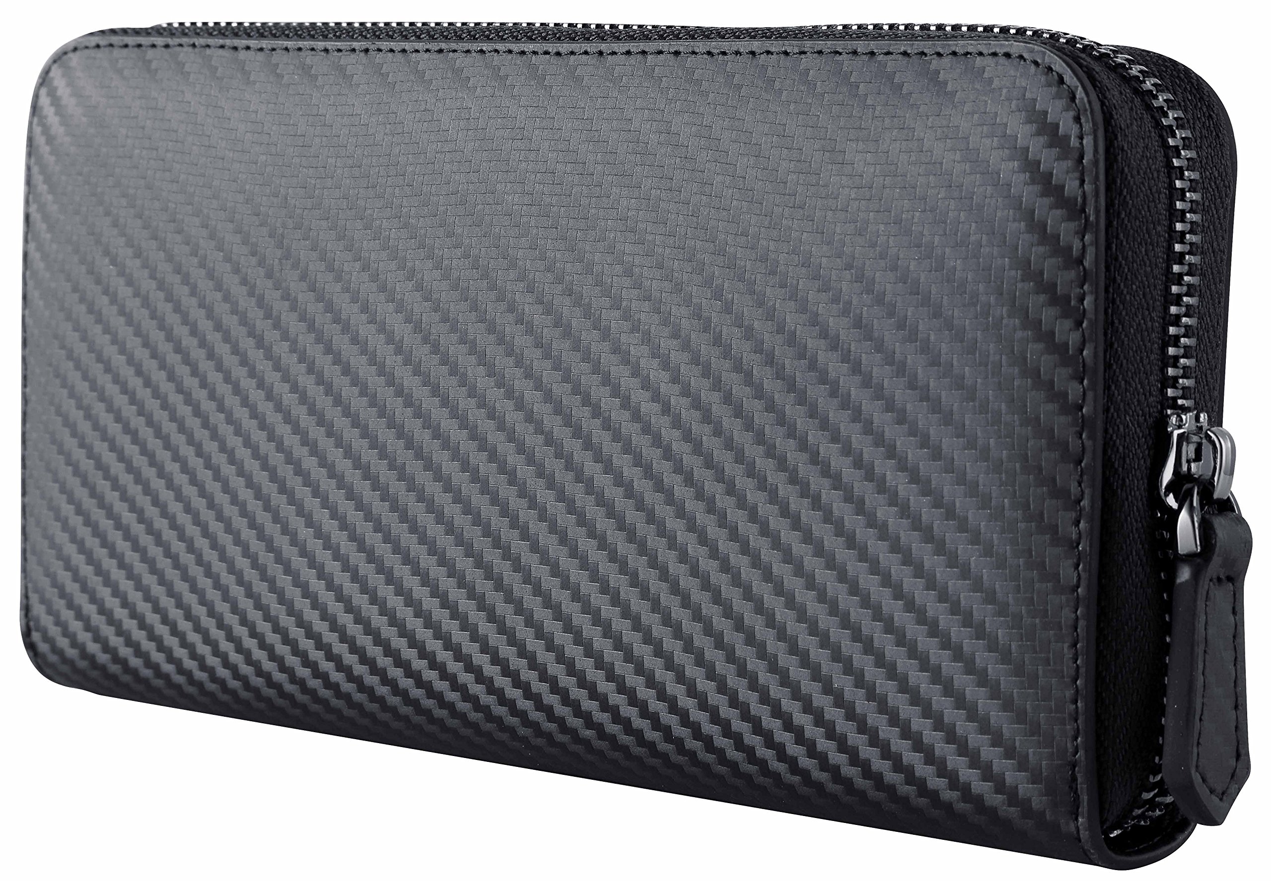 Using carbon leather with an overwhelming presence, long wallet with outstanding functionality.