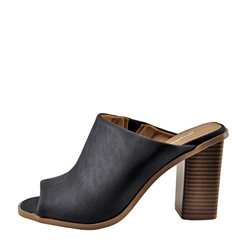 Binding : Apparel Product Description Look your best at any occasion with this extremely versatile and trendy mule called Luciana-01 by Qupid! Featuring, Synthetic faux leather upper, Open-toe construction, Easy slip-on style, Stacked wooden heel, Lightly cushioned insole for comfort, Sturdy man-made outsole. 0