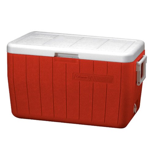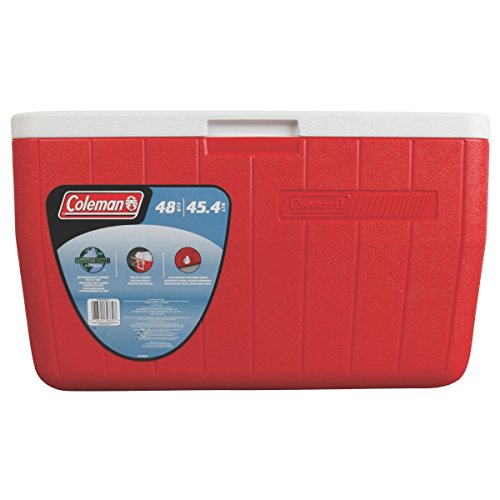 Amazon.com Product Description The Coleman 48-Quart Chest Cooler combines the easy-to-carry convenience of two-way handles with the rugged durability of a hard plastic exterior and hinged lid, making it the perfect cooler for afternoons on the beach or on the game field. This innovative cooler is constructed with environmentally-friendly Thermozone insulation to keep food and beverages fresh and cold. This American-made cooler also features a rust-proof, leak-proof drain for easy emptying and cleaning, and it has the capacity to hold up to 63 12-ounce cans. About Coleman The Coleman Company has been creating and innovating products for recreational outdoor use since W.C. Coleman started selling gasoline-powered lanterns in 1900. Inventor of the hugely popular fold-up camp stove, Coleman developed a plastic liner for his galvanized steel coolers in 1957--the birth of the modern cooler--and the company has been improving their utility and design ever since. The array of products that bear the Coleman name now includes just about everything you might need to work or play outdoors, from tents and sleeping bags to boats, backpacks, and furniture.