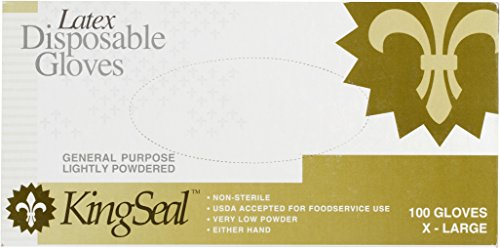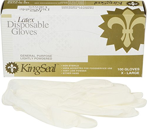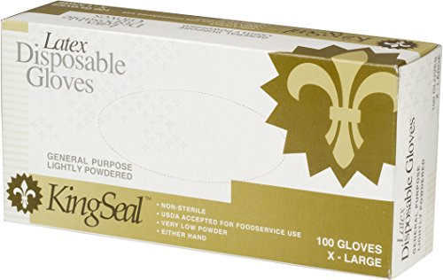 KingSeal 4mm Powdered Ivory Latex Disposable Gloves - Large, 4 Pack/100 per Pack