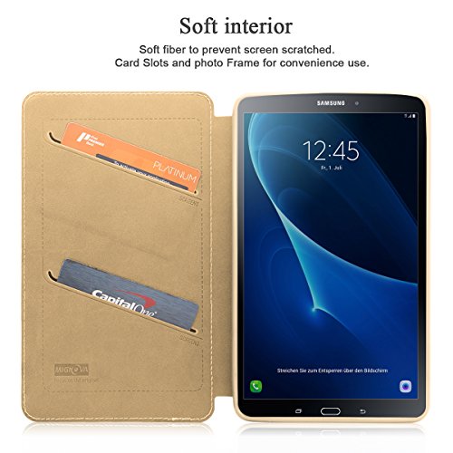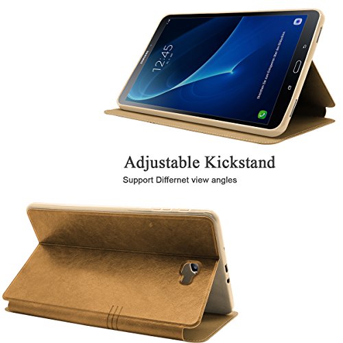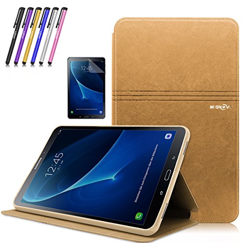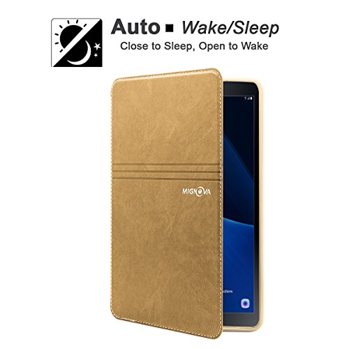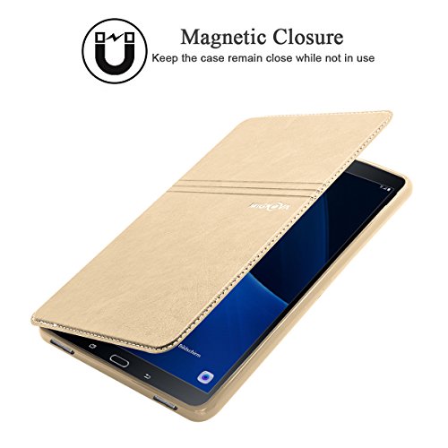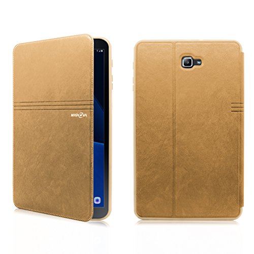 Mignova Slim-Fit Smart Synthetic Leather Folio Book Cover Case - Card Pocket, Kickstand Feature for Samsung Galaxy Tab A 10.1 inch T580 + Free Screen Protector and Stylus (Gold)