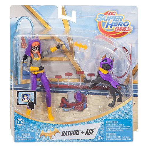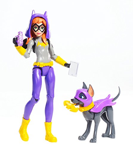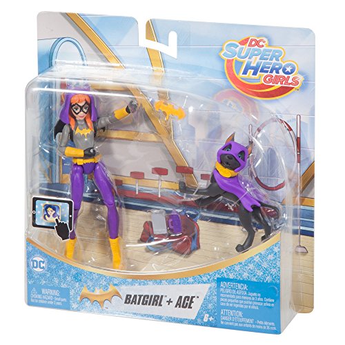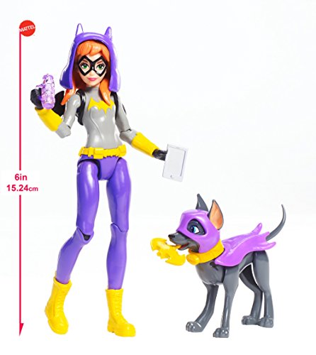 When the DC Super Hero Girls aren't practicing their Super hero skills or pooling their powers to save the day, they love spending time with their pets! Batgirl action figure and her black dog ace are all geared up for lots of fun action! This 6-inch action figure comes with her beloved pet and fun accessories for Batgirl to train her furry friend to save the day. Accessories include her bat-shaped wings and hood and a water bottle to make sure she stays properly hydrated all day. Ace can even hold the included bat-dog toy in his mouth! Other DC Super Hero Girls, their pets, and accessories are available (sold separately) for even more favorite animal fun! Supergirl action figure comes with her white dog, Wonder Woman action figure with her kangaroo, and Bumblebee action figure with a bear cub. Each Super hero figure wears an outfit designed in her signature colors and with character icons and comes with a tablet to stay in touch. Pet time is the best time. Collect them all for Super hero and pet play dates that are out of this world! Each sold separately, subject to availability.Feature