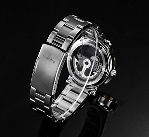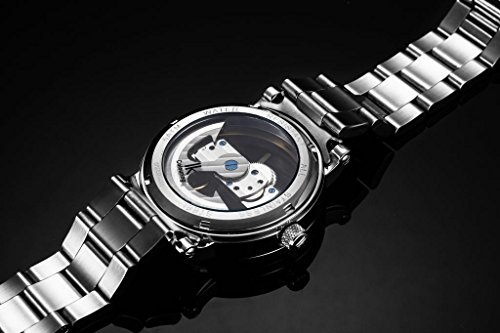 -. Title : Gute Luxury Steampunk Bling Auto Mechanical Wristwatch Stainless Steel Silver Minimalist Watch