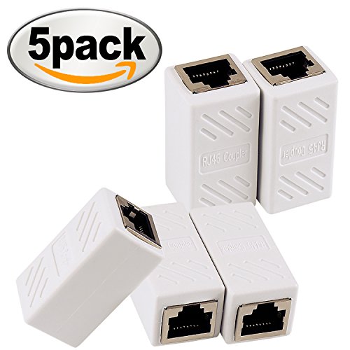 Jadaol Ethernet Cable In-line Shielded RJ45 Coupler, Female to Female - 5 Pack White