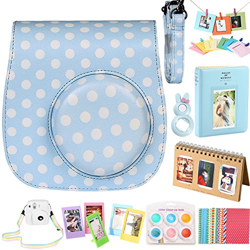 Fujifilm Instax Accessories: Brand SAIKA instax mini accessories kit fits for Fujifilm Instax Mini 8/ Mini 8+/ Mini 9 instant camera. This accessories bundle includes not only an exquisite Mini 8 Case but also other necessary accessories, as 1x Mini Photo Album, 1x Calendar Album, 1x Rabbit Close-up Selfie Lens, 6x Color Effect Filters, 1x Rainbow Shoulder Neck Strap, 1x Table Frames Set, 1x Wall Hanging Frames, 1x Film Decor Sticker Borders