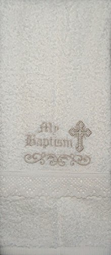 - This is an elegant baptism towel with exquisite embroidery.