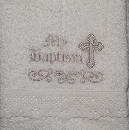 Integrity Designs Cotton Terrycloth Baptism/Christening Towel, White with Silver Embroidery, 100% Cotton, 16 x 30 Inch Size, Quantity of 1 per Package