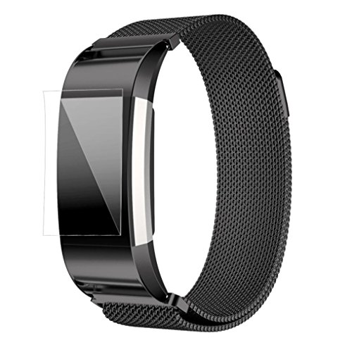 -. Title : Watch, TOPUNDER Milanese Stainless Steel Watch Band Strap Bracelet + HD Film For Fitbit Charge 2