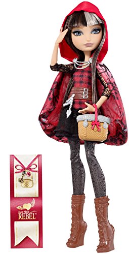 -. Feature : At Ever After High, the teenage sons and daughters of the most famous fairytales ever after turn tradition on its crown! / Cerise Hood is the daughter of Little Red Riding Hood / The posable dolls are dressed in spellbinding outfits that take a modern spin off their parents' legacies and are recognizable from the webisodes / Each comes with a doll stand, signature-style headpiece, detailed jewelry, handbag, a pair of spelltacular shoes and a doll hairbrush / Get each character's hexclusive story in the included story bookmark / Cerise Hood, daughter of Little Red Riding Hood, rocks hexquisite outfits that add a modern edge to her fairytale-inspired look / Her charming dress showcases her signature buffalo check print / Distressed "leather" leggings, lace-up boots with fringe tassles and a picnic-basket purse are enchanting accessories / Of course, Cerise doll wears her luxe cape with hood (to hide her big, bad secret) / Doll also comes with a doll stand, doll hairbrush and bookmark that tells her hexclusive side of the story