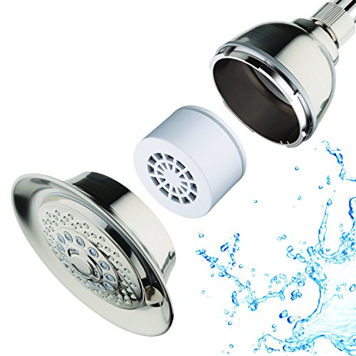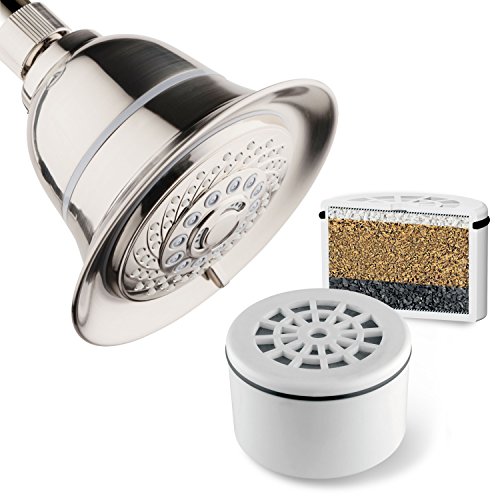 AquaCare By HotelSpa Filtered Shower Head 5 Inch Face 6 Setting Showerhead with 3 Stage Shower Filter Cartridge Inside. (Brushed Nickel Finish)