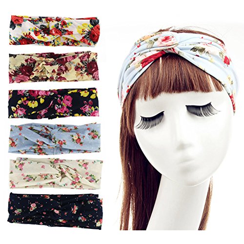 Yeshan Women Stretchable Twist knot Hairband Boho Floal Style Style Criss Cross Headband Headwrap ,6pcs