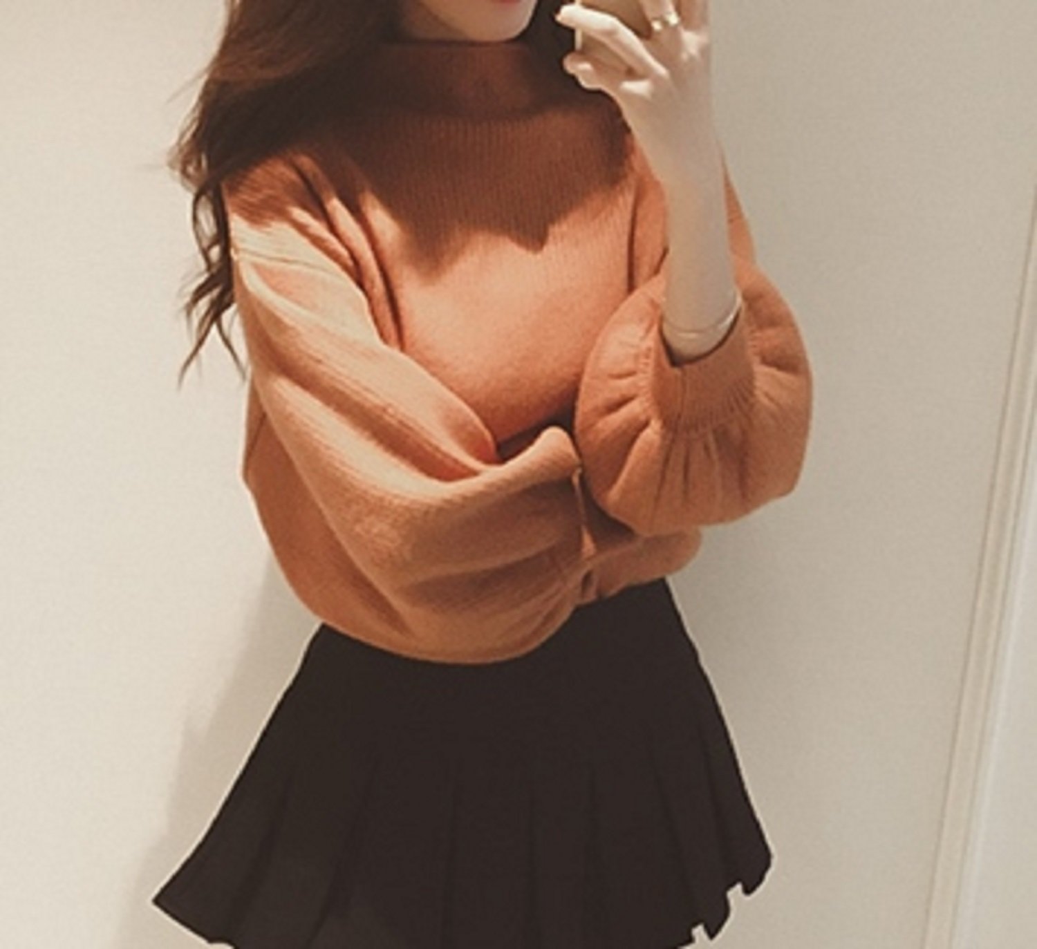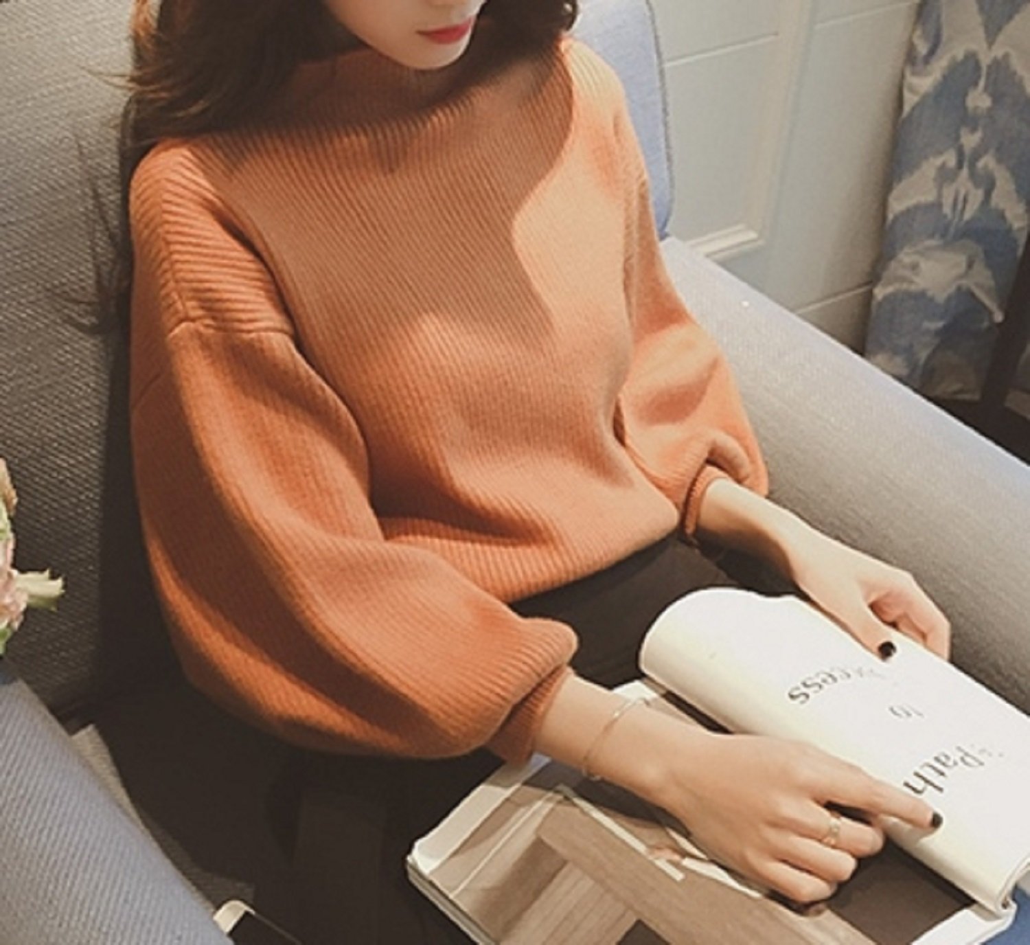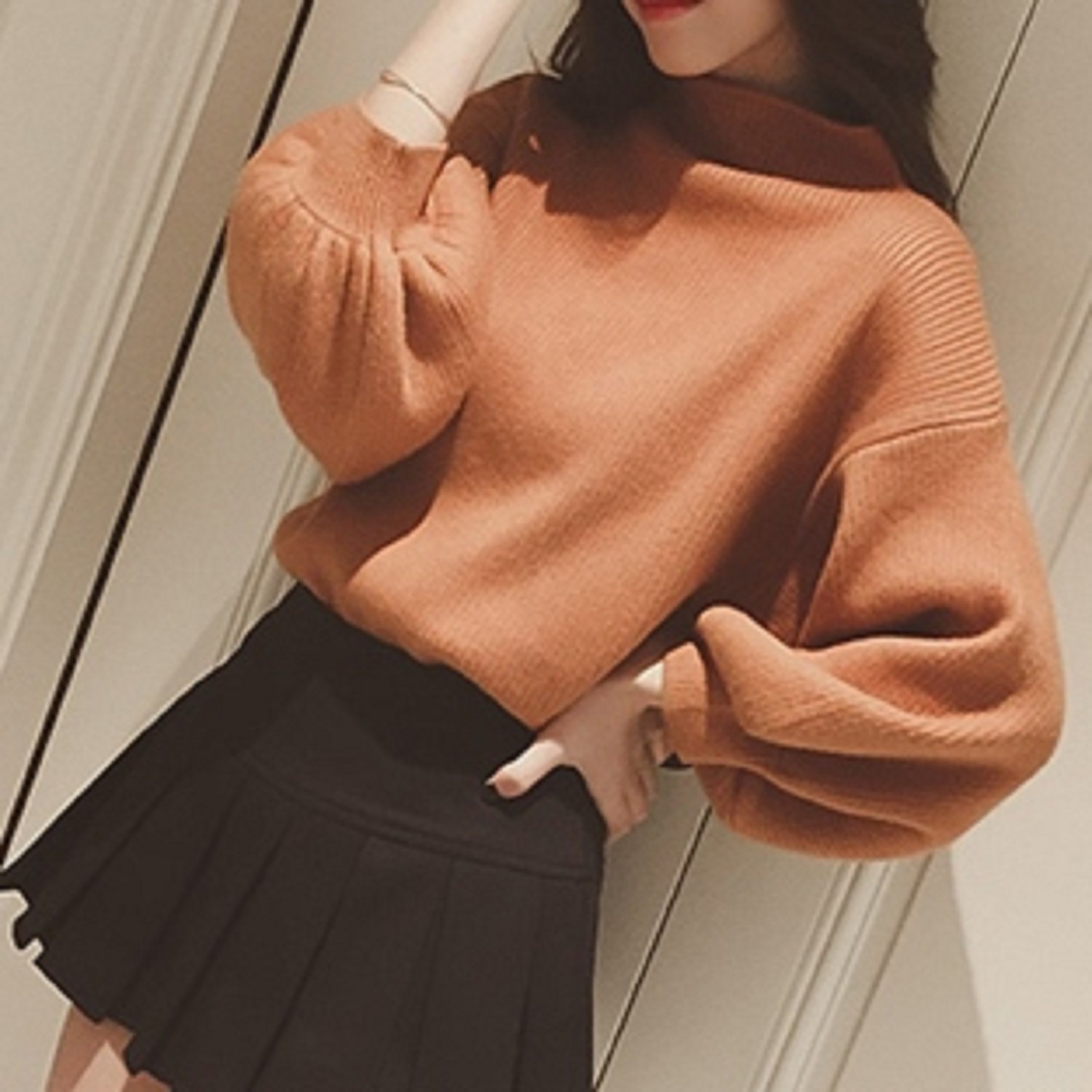 It is a cute knit adult with a volumey sleeve with a sense of volume in the trend bottleneck.
