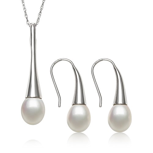 -. Title : Sterling Silver Cultured Freshwater Pearl Drop Earring and Pendant Set