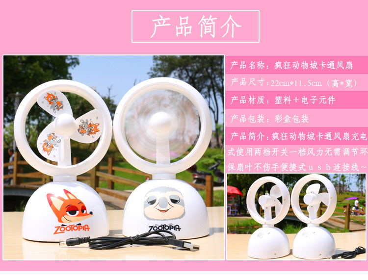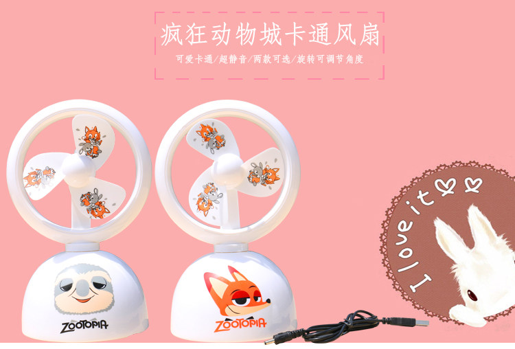 疯狂动物城usb风扇大学生宿舍桌面台式电风扇大风力静音充电风扇
