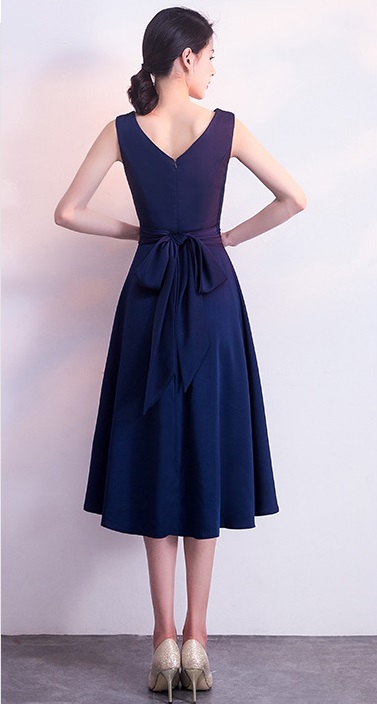 ミモレ丈のノースリーブフィッシュテールドレス。