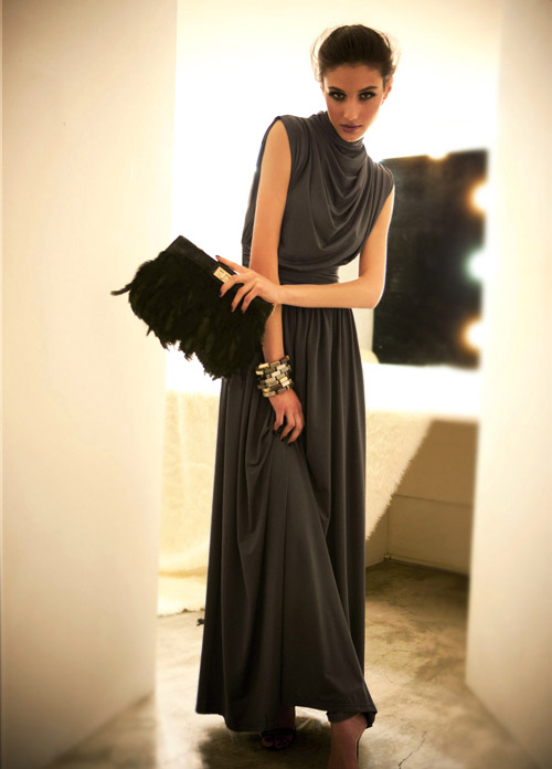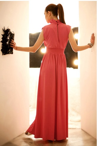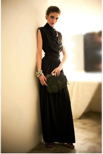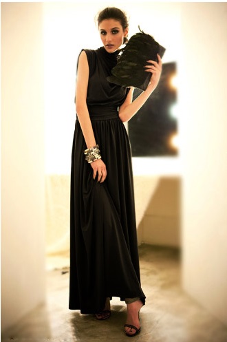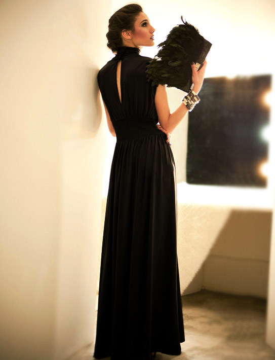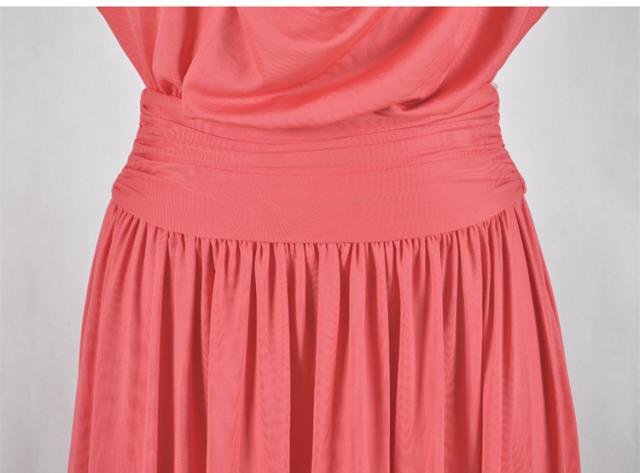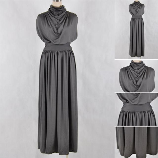 パーティースタイル フレア ロング 無地 ハイネック ドレス 脚長効果