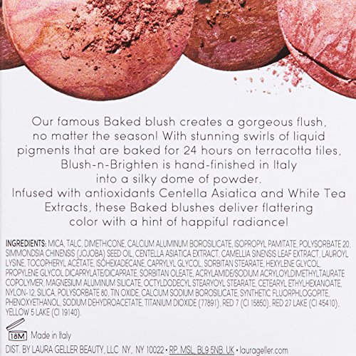 Our famous Baked blush creates a gorgeous flush, no matter the season! With stunning swirls of liquid pigments that are baked for 24 hours on terracotta tiles, Blush-n-Brighten is hand-finished in Italy into a silky dome of powder. Infused with antioxidants Centella Asiatica and White Tea Extracts, these Baked blushes deliver flattering color with a hint of happiful radiance!Feature
