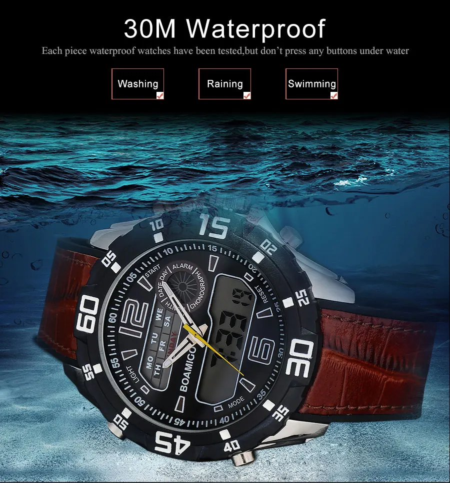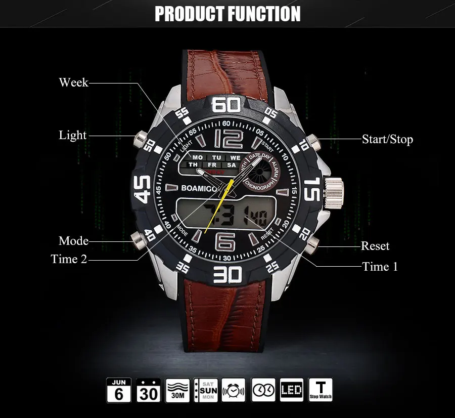 Feature:Stop Watch,Shock Resistant,LED display,Auto Date,Chronograph,Complete Calendar,Multiple Time Zone,Perpetual Calendar,Water Resistant,Alarm