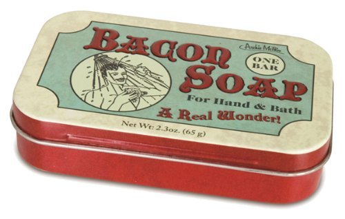 -. Binding : Health and Beauty -. Brand : Accoutrements -. Feature : Comes in classy tin / Great way to carry that bacon smell with you all day / Be the envy of your friends -. Label : Accoutrements -. Manufacturer : Accoutrements -. MPN : 11960 -. PartNumber : 11960 -. ProductGroup : Health and Beauty -. ProductTypeName : HEALTH_PERSONAL_CARE -. Publisher : Accoutrements -. Studio : Accoutrements -. Title : Accoutrements Bacon Soap in Tin