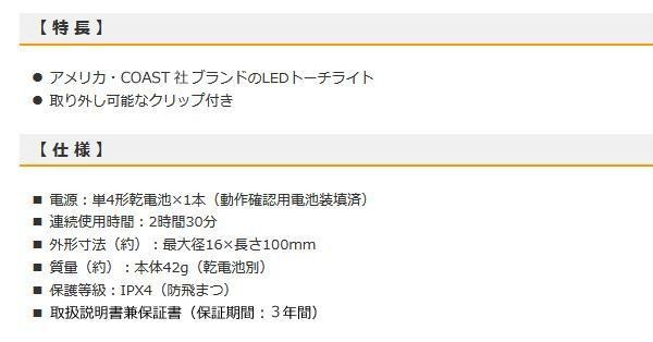 アメリカ・コースト社のLEDトーチライト。