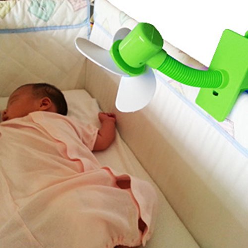 KF Baby Clip-On Mini Stroller Fan keeps your little one cool and happy on hot summer days! With a strong clip, the stroller fan can be easily attached on different parts of most strollers. Because the blades are made of soft foam, little curious fingers will not get hurt by the blades even when the fan is turned on. While KF Baby Clip-On Mini Stroller Fan is very safe for babies and little kids, its soft foam blades provide a cool gentle breeze for your little one nevertheless. This stroller fan features a flexible neck that allows the fan to blow in any direction and angle. Operated by 2 AA batteries (NOT included).Feature