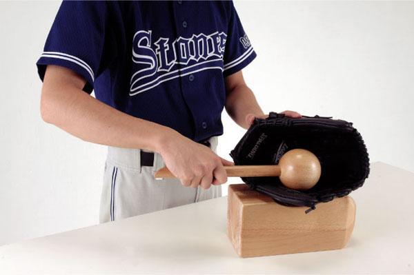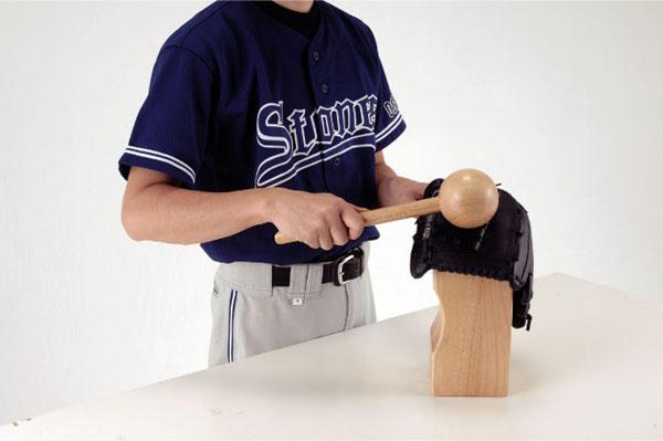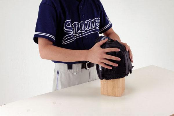 くぼみや突起を利用して自由にグラブの型づくりやケアのできるグラブ仕上げスタンドです。