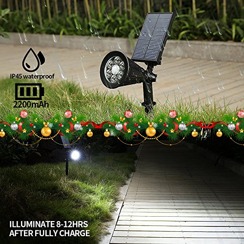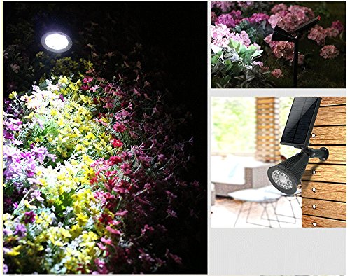 [LENGTHEN SPIKE AND AUTO-ON/OFF]: Free to control lighting height and angle with the lengthen detachable spike. With the function of Intelligent light-sensing function, the solar LED spotlight will Auto on when the day get dark and Auto-off when the sun rise.