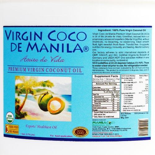 -. Title : Organic 100% Virgin Coconut Oil Dietary Supplement - 1 gallon (128 oz / 3.79 liters) Direct from Maker - Manila Coco Factory