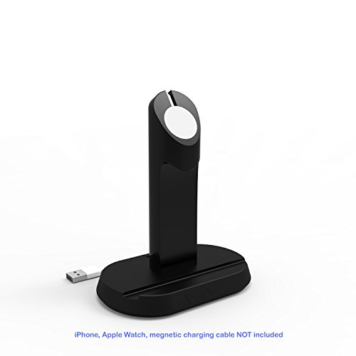 -. Title : Apple Watch Stand and iPhone Stand, CyberTech 2 in 1 Apple Watch Charging Station Dock cradle holder with Built-in Insert Slots for iPhone & Apple iWatch 38/42 mm 2015 (Black) (iPhone, iWatch and megnetic charging cable NOT included)