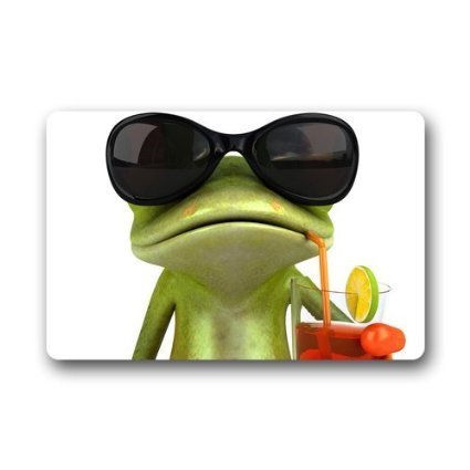 -. Title : Custom Welcome Funny Frog With Glasses Drinking Funny Door Mat Rug Indoor/Outdoor Mats Welcome Doormat Decor Rug 30"(L) x 18"(W)