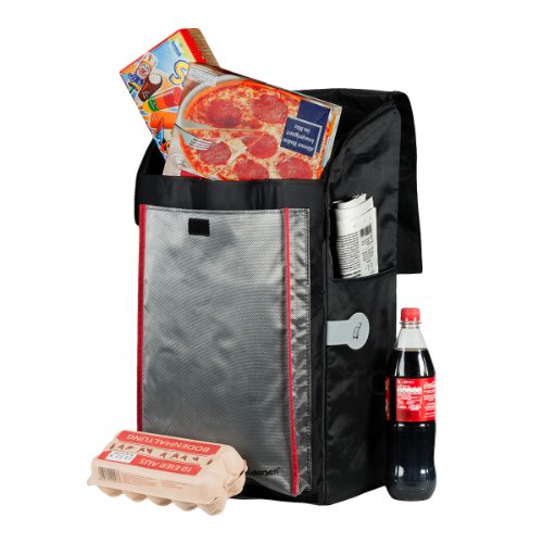 Tasche: Grosses Volumen bis 50 Liter | Inkl. Sicherheitsreflektoren, teilweise mit Thermofach mit Platz fur 2-3 Tiefkuhlpizzen, Seitentasche, Innentasche | wasserabweisend