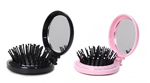 LOUISE MAELYS 2pcs Mix Color Round Folding Pocket Hair Brush Mini Pop-up Hair Comb with Makeup Mirror
