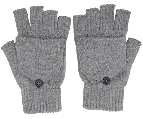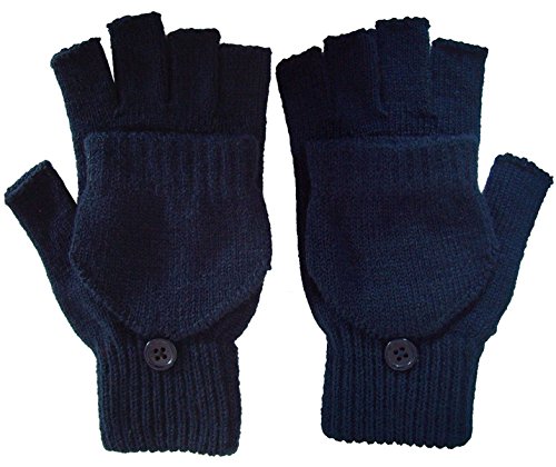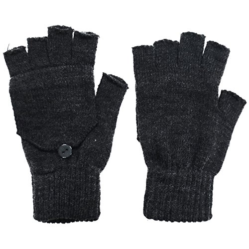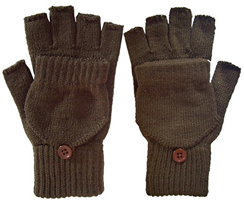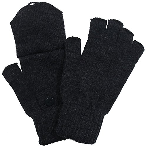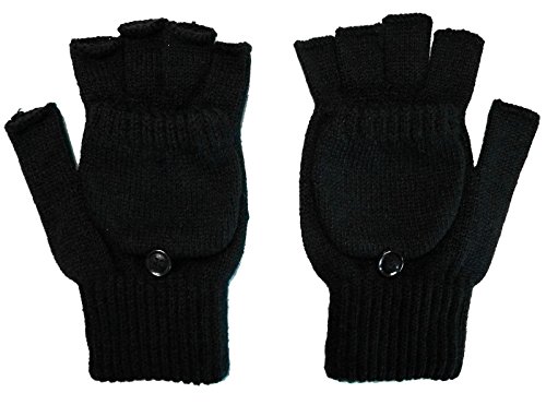 | Unisex Womens Mens Winter Knitted Cuffed Fingerless Gloves Convertible Mittens |